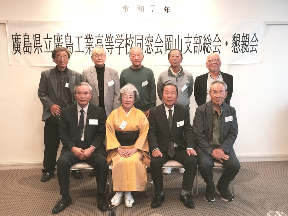 | 隔年で行われる岡山支部総会&懇親会が、岡山駅近くのイオン岡山店南側にあるピュアリティまきびで開催されました。古野支部長(68回建)、岩田(60回建)・倉石(73回化)・山岡(82回土)副支部長、山田(66回機)・青木(69回建)・江田(76回建)幹事と本部同窓会河野会長(72回建)・小野事務局長(76回機)の合わせて9名の参加でした。前回同様に、総会の案内状130通余りを送付したそうですがその内不達が8通もあり案内状が届きませんでした。また、会員から体調不良で不参加の連絡が多かったとお伺いしました。高齢化は否応なしに進んでいきますが、若い人や壮年期の方々の参加が望まれるところです。古野支部長はじめ倉石副支部長兼事務局や世話人の方々のご尽力で無事総会を迎える事が出来ました。 懇親会では、参加者の近況報告がありご自身の日頃の地域貢献活動・体調管理法・将来設計や目標などの貴重なお話をお伺いすることが出来ました。倉石副支部長のお得意の指笛による旧校歌・故郷などの演奏は流石お見事でした。新校歌の合唱を行い、中締めのお言葉は岩田副支部長からいただきました。終始和やかで楽しい時間を共有することが出来ました。ありがとうございました。 本部事務局と同様に案内状の不達件数が多々あるので住居変更の連絡をこまめにお願いしたいと思いました。引き続きご協力・ご支援をよろしくお願いします。 報告:本部事務局 小野憲二 |