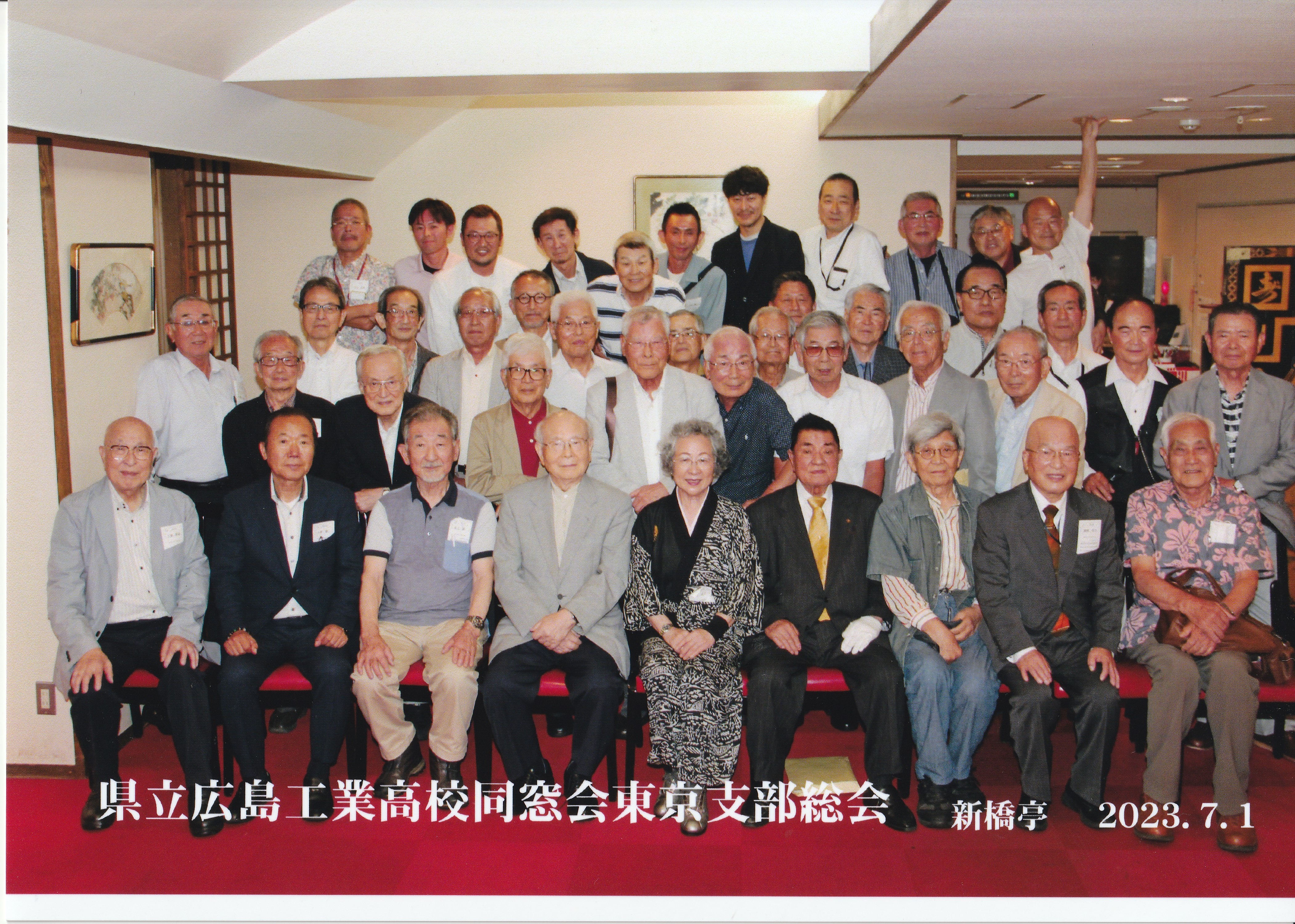 猛暑日が続くなか、令和6年度県工同窓会東京支部総会及び懇親会を開催しました。同窓会会長 河野房子様を始め52名の方が参加されました。初参加の方が18名ありそのうち女性の方が3名参加されこれは、過去に例を見ないことでした。
