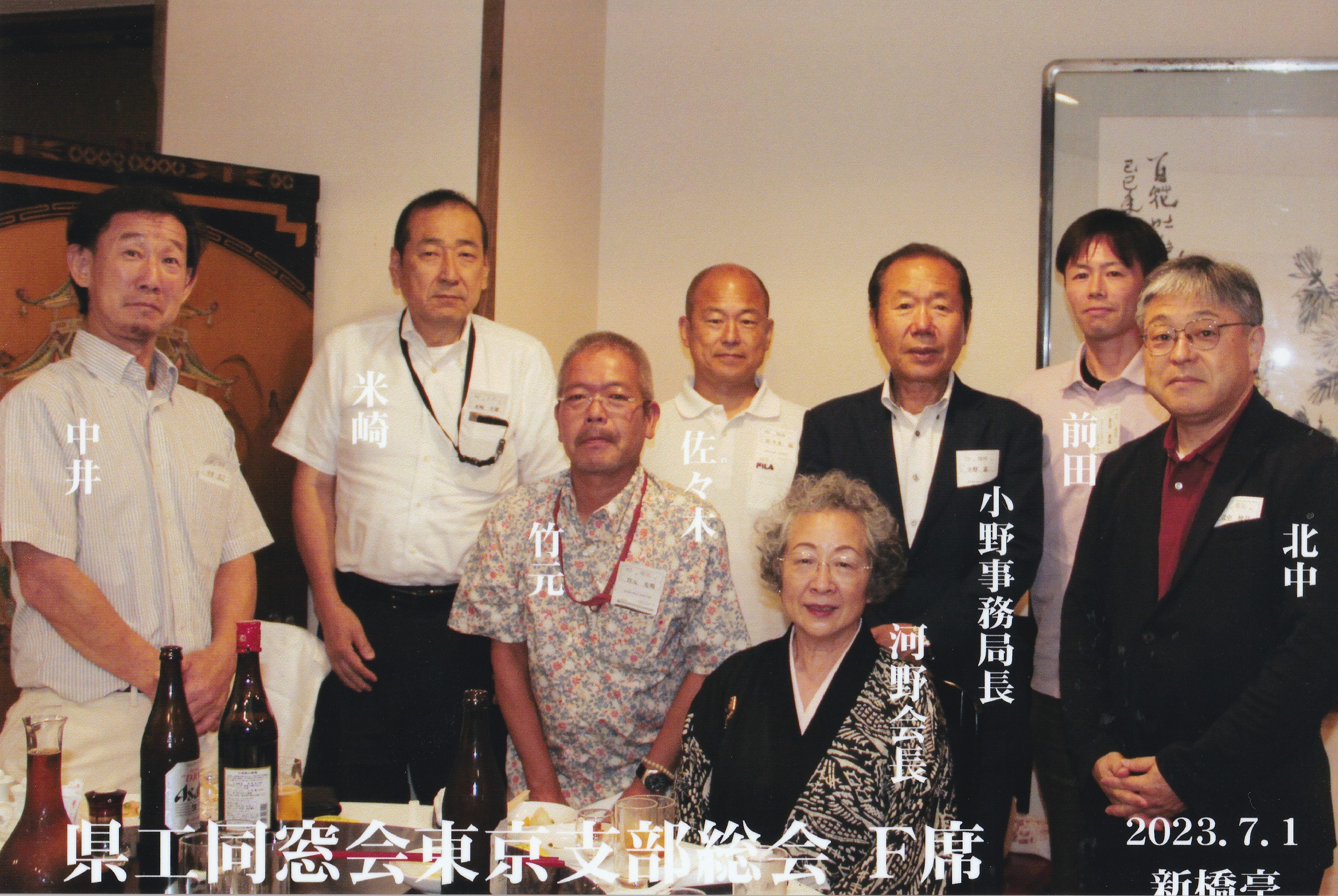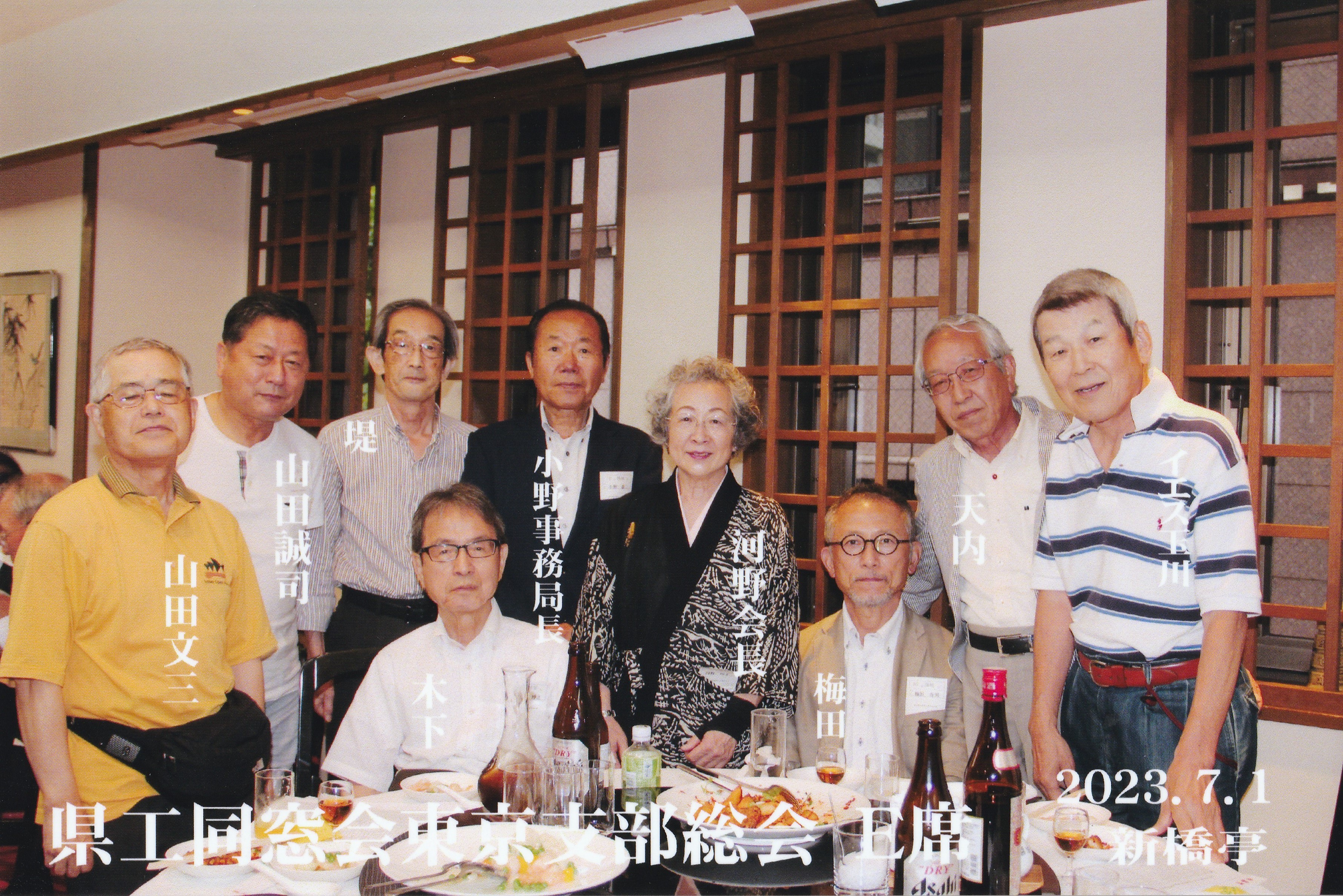 令和5年7月1日(土) 12:30~  :港区新橋「新橋亭」 東京支部 新支部長 角 敏弘(59回電気)